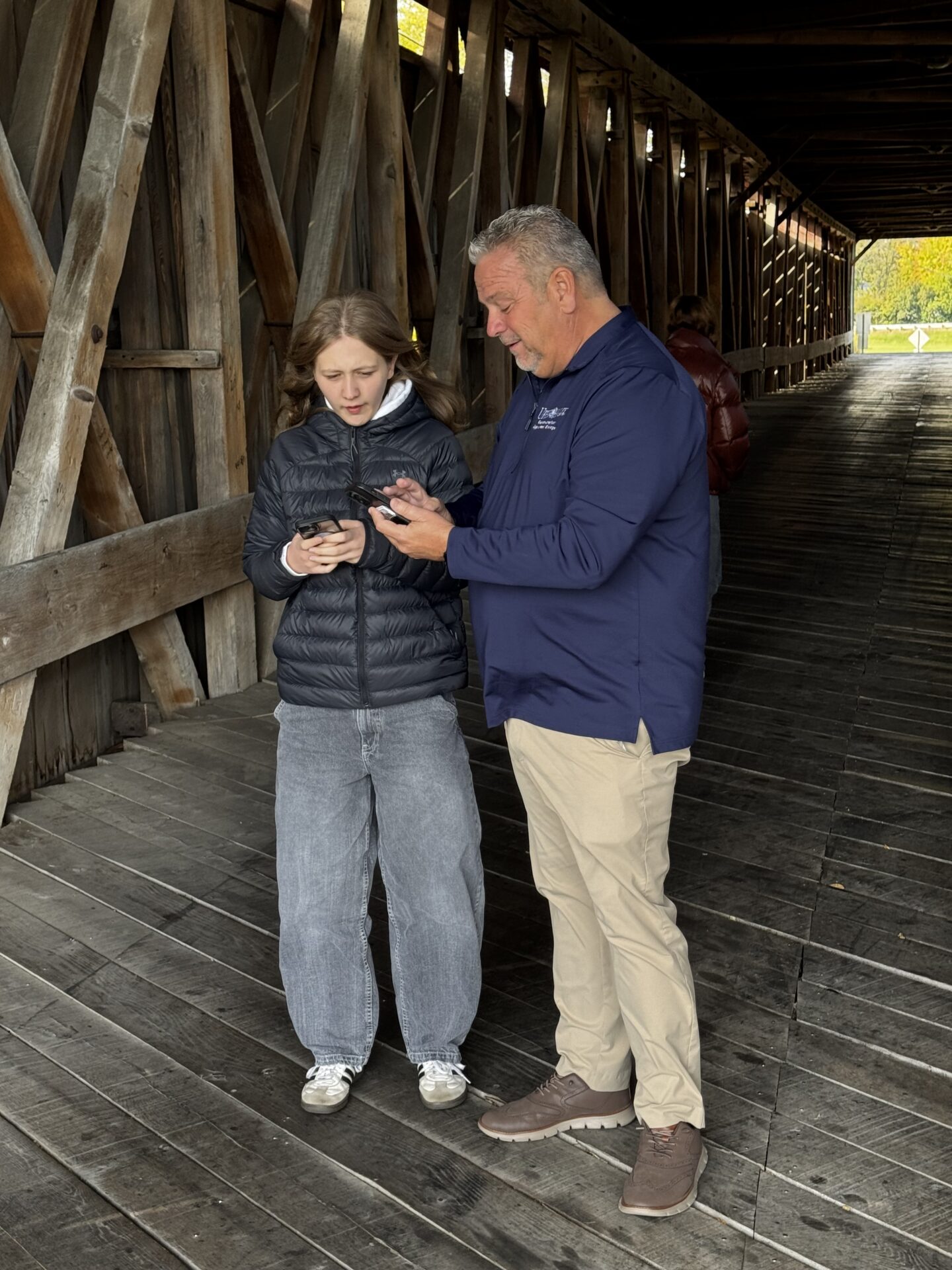 Dann stand noch eine Besichtigung von AIRSTREAM auf dem Programm. Das sind diese luxuriösen Camper – sehr beliebt in den USA. Vorher haben wir aber noch eine Landpartie gemacht. Es ging zu einer alten Brücke, eine der vielen Covered Bridges.