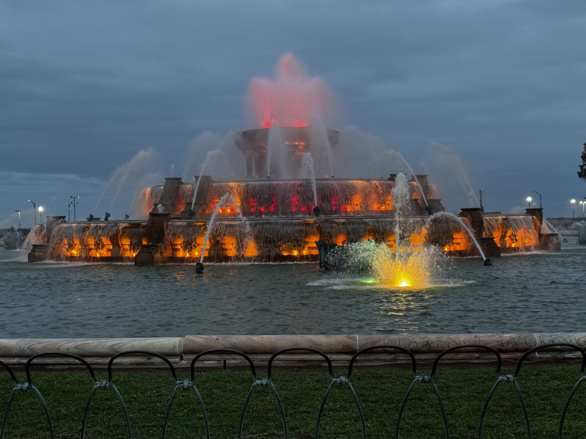 Nun begann ein neues Abenteuer – Chicago, hier kommen wir! Als erstes stand ein Besuch des Buckingham Fountain am Lake Michigan auf dem Programm – so bunt!