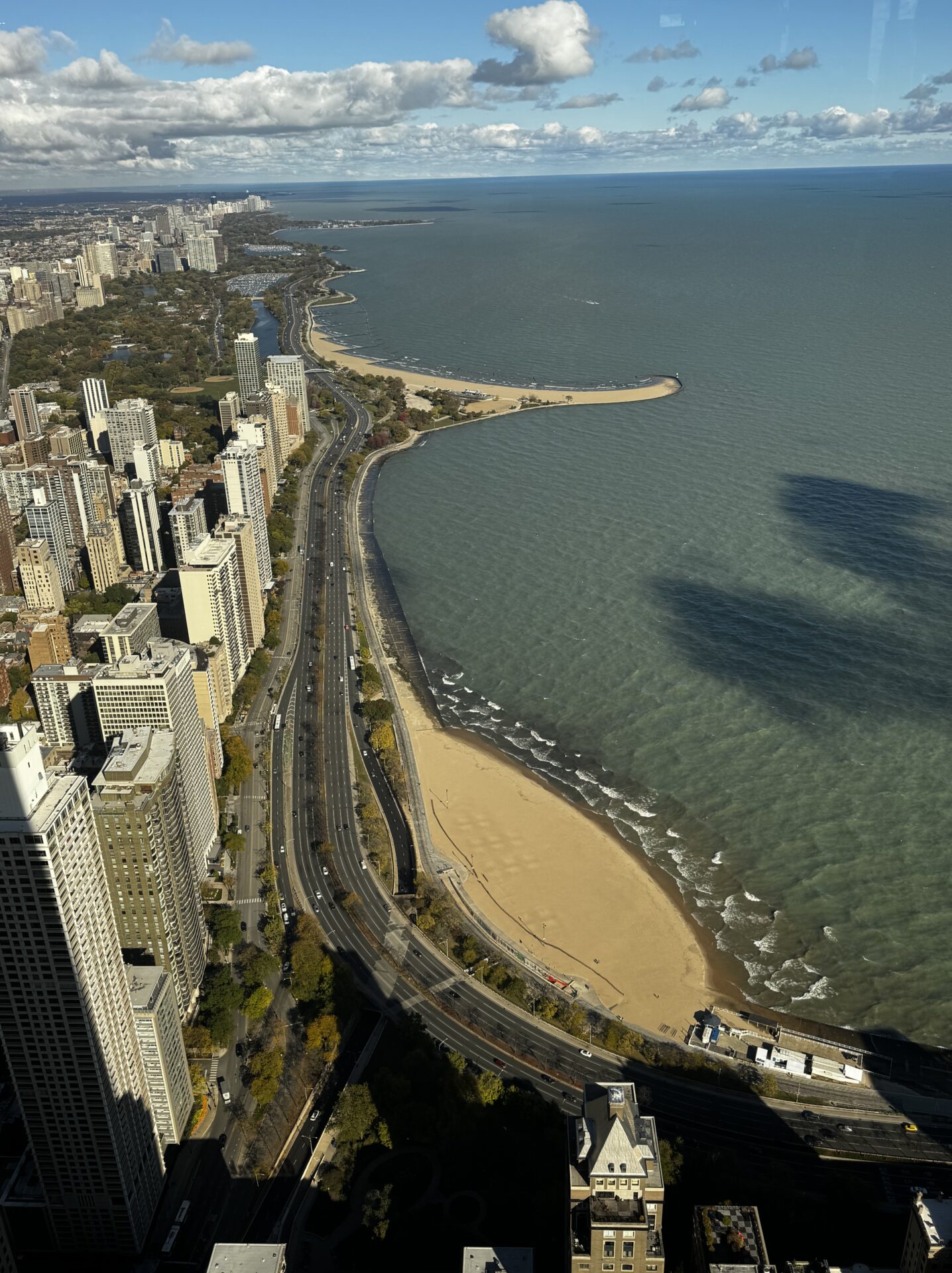 Es sollte noch besser kommen. Wir besuchten das John Hancock Building mit dem 360° Observatory. Der Fahrstuhl schoss uns in einer Minute hoch zum 96. Stockwerk. Die Aussicht von da oben über den Lake Michigan und die Stadt ist toll.